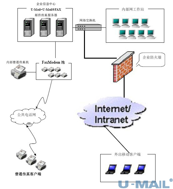 2 | 智能接收并轉(zhuǎn)發(fā)傳真 | 系統(tǒng)可以自動接收傳真,并轉(zhuǎn)發(fā)到個人收件箱;用戶可把接收到的傳真文件加上標(biāo)題、批注等轉(zhuǎn)發(fā)出去 |
