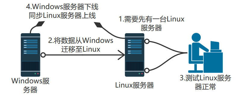 4. 將數據從過度服務器遷移至原Windows服務器(此時已安裝為Linux版本);