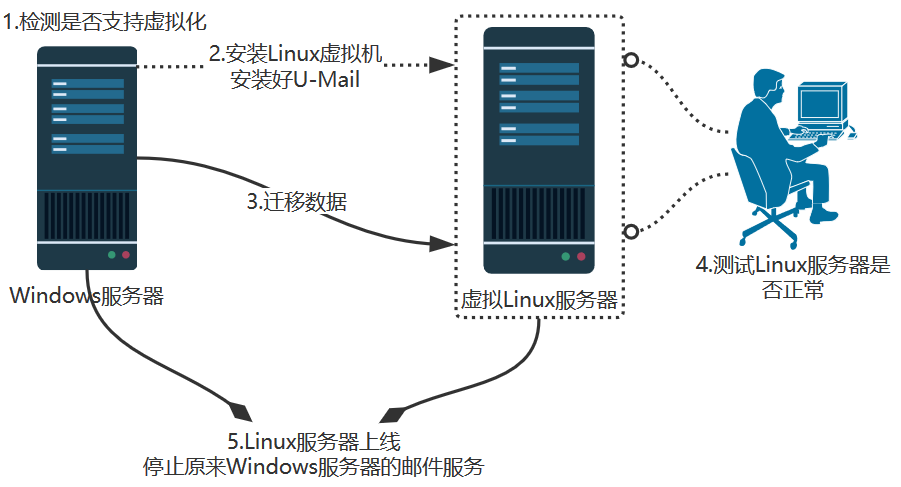 5. 上線Linux郵件服務器,并且停止原物理Windows服務器的郵件服務。