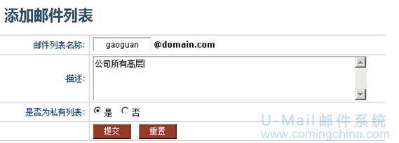 實(shí)現(xiàn)通訊錄共享之后,我們再在“域管理后臺”,找到“郵件列表管理”,點(diǎn)擊“添加郵件列表”,將自己日常亟需聯(lián)系的公司高管挑選出來,如下圖: