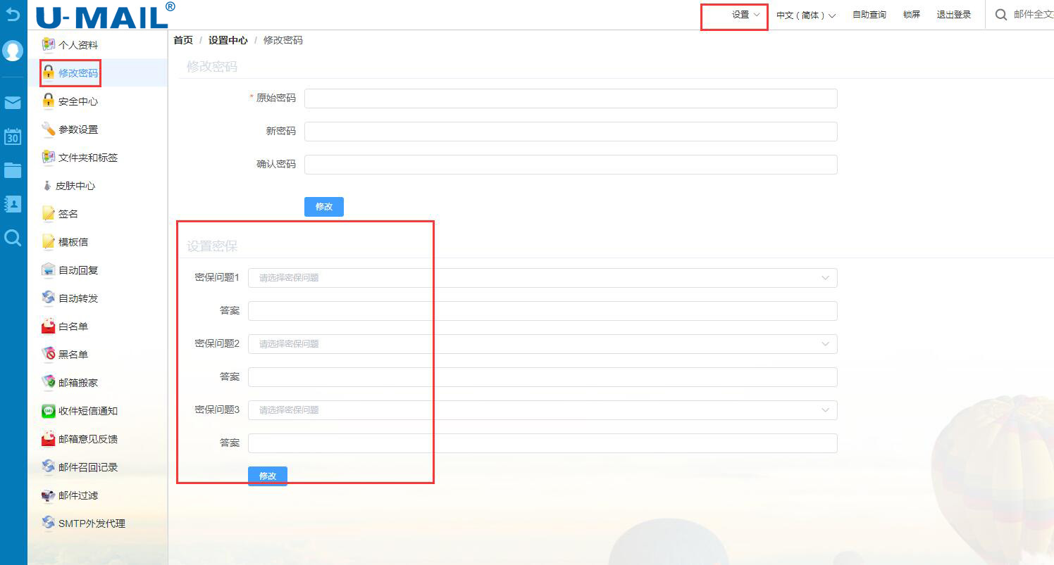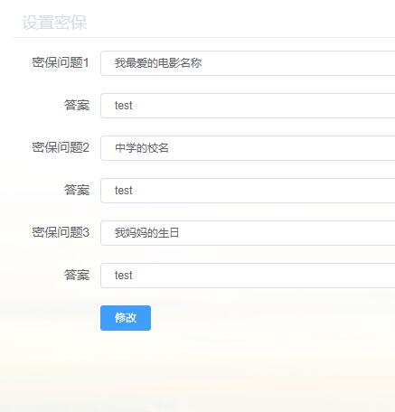 3、設置密保問題,可以自定義,也可以選擇已有問題。設置好之后點擊修改