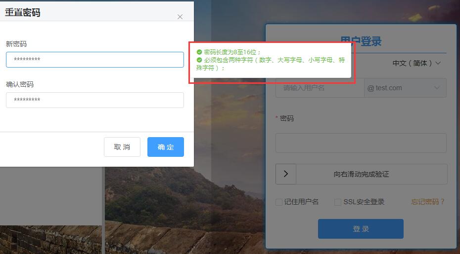 4、輸入新密碼,需要符合密碼規則,點擊確定就能修改成功