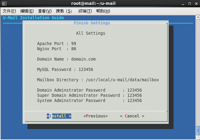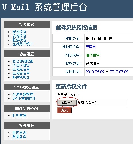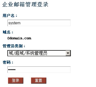 系統管理后臺:http://mail.domain.com/webmail/admin/ 帳號:system(U-Mail系統方面設置),初始密碼為123456