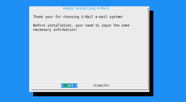 4、使用 cd 切換目錄至u-mail 目錄中,并且運(yùn)行 【./install.sh】安裝腳本,注意前面有個(gè)“點(diǎn)"。