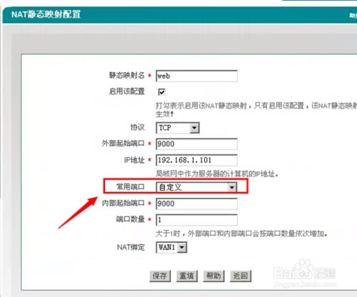 4、如果您需要映射的端口是不常見的端口,可以選擇“自定義”端口