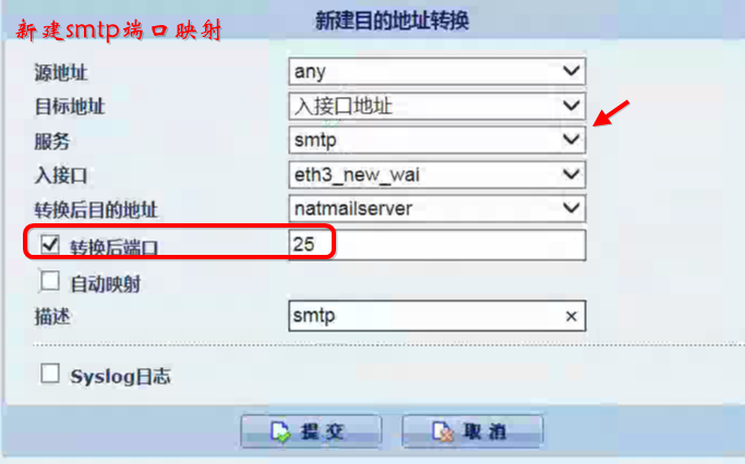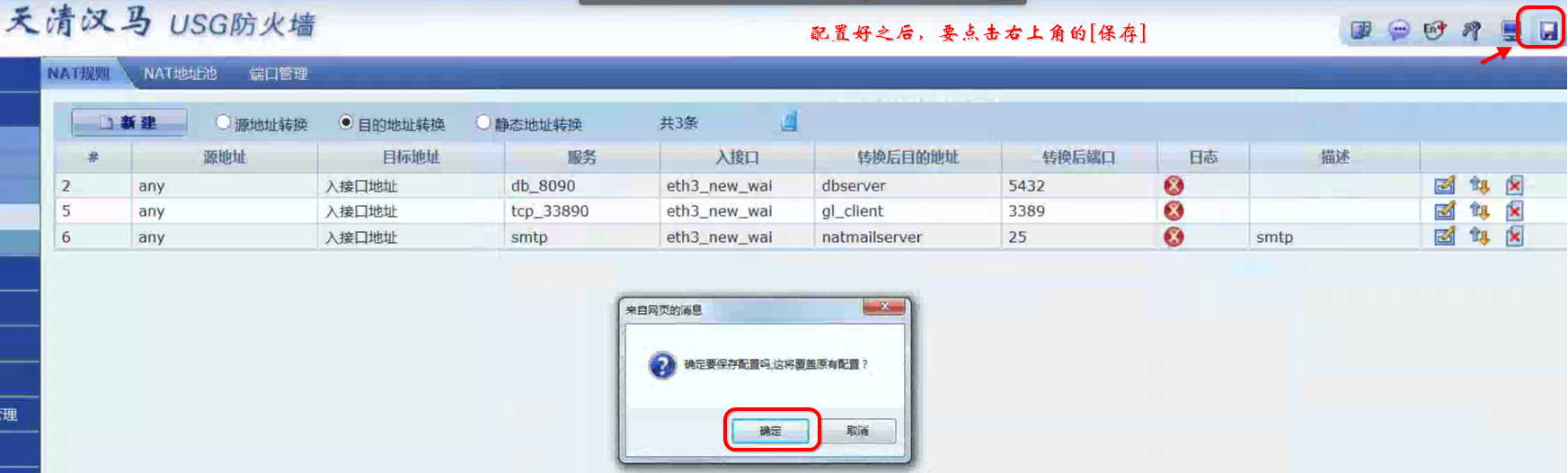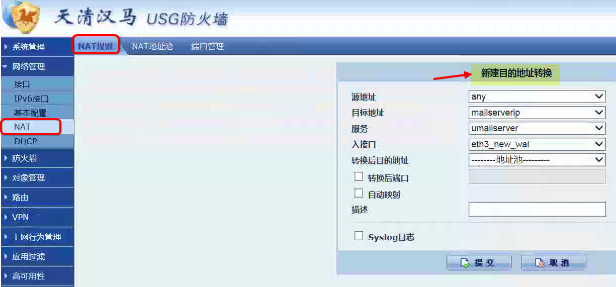 天清漢馬USG防火墻怎么設(shè)置端口映射,這里我們以映射smtp端口為例演示。
