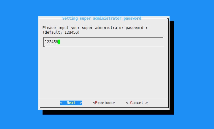 11設(shè)置超域管理員后臺的密碼(超域管理員后臺的賬號是system@domain.com 后面的域名修改為您們自已的域名),不要使用弱密碼,以免出現(xiàn)安全問題,【Next】下一步