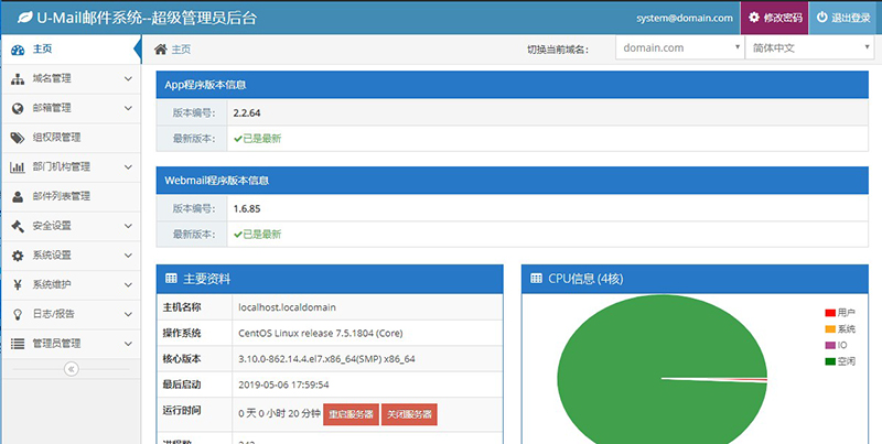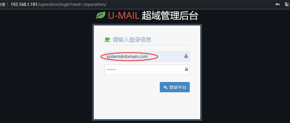 管理員賬號密碼:system@domain.com【將域名修改為您域名】
