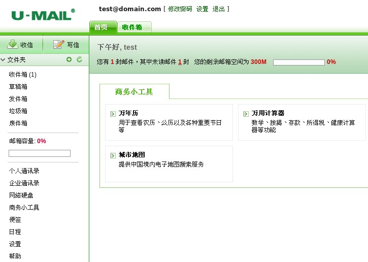 系統管理后臺:http://mail.domain.com/webmail/admin/ 帳號:system(U-Mail系統方面設置)