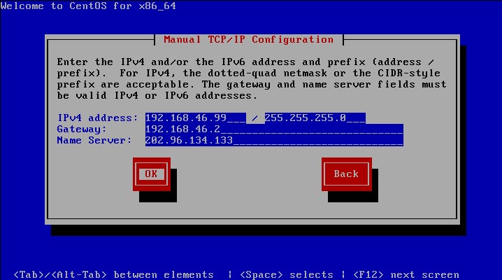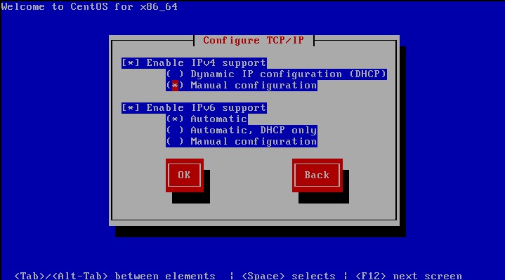 4、設置TCP/IP參數(使用Tab鍵切換,空格鍵選擇),選擇如下圖,按“OK”按鈕。