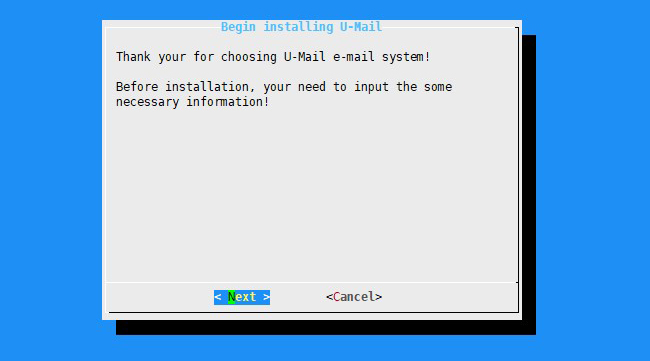 19、出現U-Mail安裝向導,輸入郵箱域名后,選擇“Next”確認,如下圖: