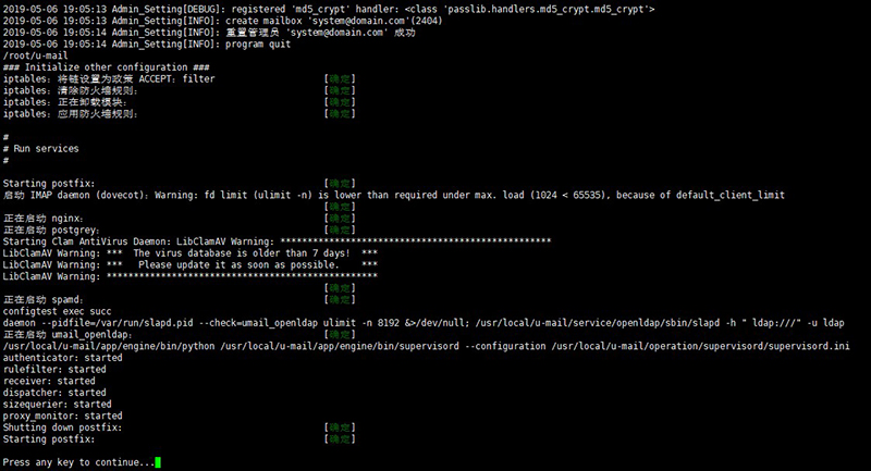 27、中間安裝過程忽略,直到提示【Press any key to continue...】輸入任意鍵繼續,輸入【回車】: