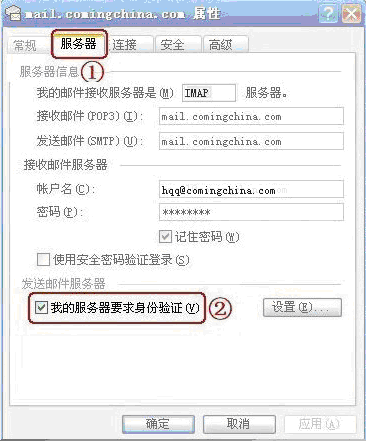 SMTP服務(wù)器:mail.comingchina.com (端口號(hào)使用默認(rèn)值)