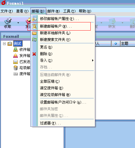一、打開 Foxmail,點擊“郵箱”菜單中的“新建郵箱帳戶”;