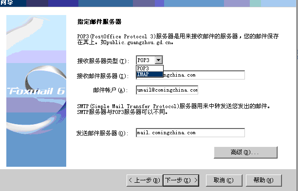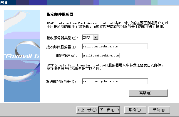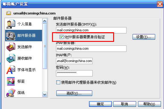 SMTP服務器:mail.comingchina.com (端口號使用默認值)