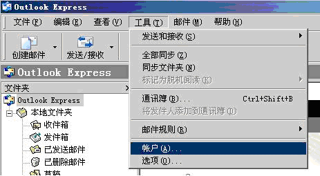 1.在outlook express窗口中單擊菜單中的"工具"選項(xiàng),在下拉菜單中選擇"帳戶", 打開(kāi)帳戶窗口,如下圖:
