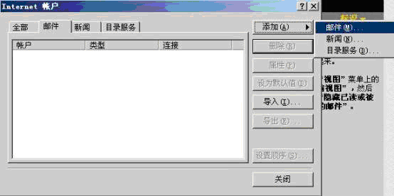 2.單擊"添加"按鈕,在彈出的選項(xiàng)中選擇"郵件",打開(kāi)郵件對(duì)話框