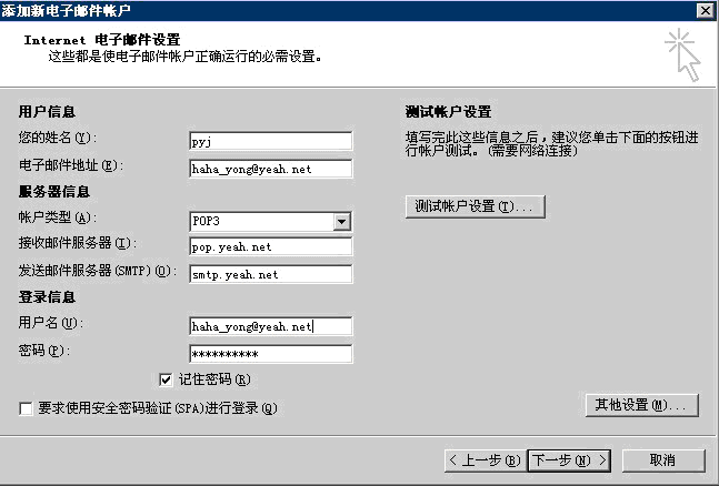 6. 填寫“用戶信息”, “服務器信息”及“登錄信息”后,點擊“其它設置”