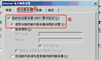 7. 在彈出的Internet電子郵件設置中點擊“發(fā)送服務器”標簽,勾選“我的發(fā)送服務器(SMTP)需要驗證,選擇“使用與接收郵件服務器相同的設置”,點擊“確定”