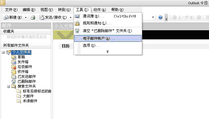 一、首先設置郵件帳號:打開Outlook 2003后,單擊菜單欄中的“工具”,然后選擇“電站郵件帳戶”; 如下圖所示