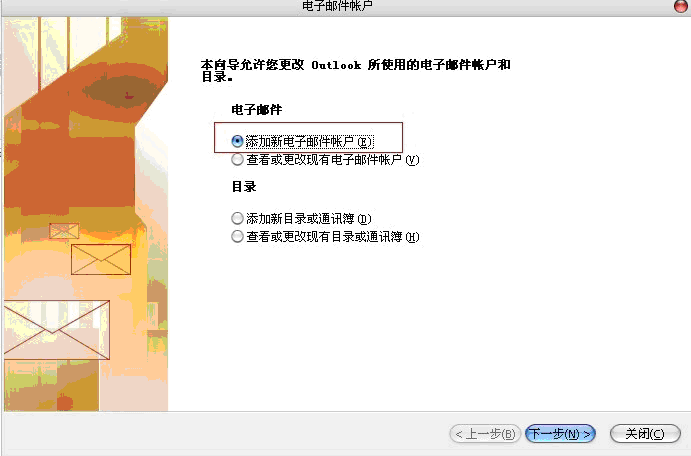 二、在彈出的”電子郵件賬戶”對話框中,選擇電子郵件--“添加新電子郵件賬戶”;如下圖