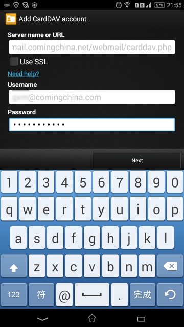 4、添加CardDAV 帳號信息,然后點擊“Next”。如下圖: