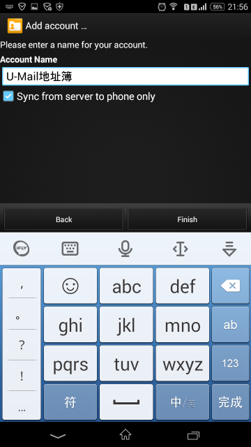 5、輸入帳號名稱,這里以輸入“U-Mail地址簿”為例。如下圖: