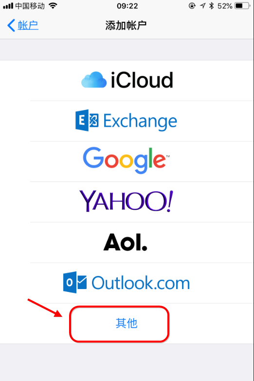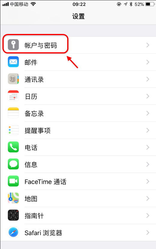 3 [賬戶與密碼]菜單,選擇添加郵箱賬號