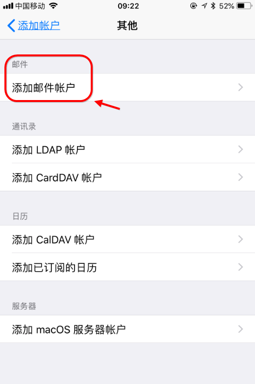 5 接著,到其他菜單欄---郵件,選擇[添加郵件賬戶]