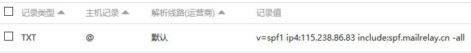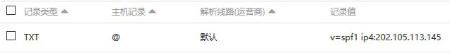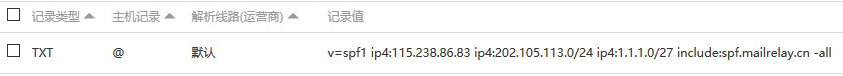v=spf1 ip4:202.105.113.145(單IP,填寫您的郵件服務器公網IP)