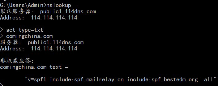 include:spf.mailrelay.cn 這個是表示,域名@mailrelay.cn下面授權的TXT主機,也是本域名授權的主機地址。