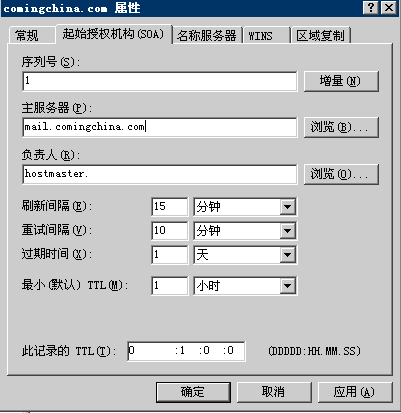 比如郵件服務器域名為comingchina.comFQDN:mail.comingchina.com