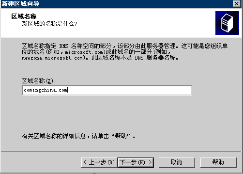 5.區域名稱:comingchina.com,單擊下一步
