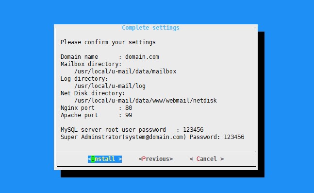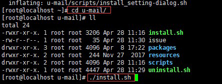 運行安裝腳本:切換至解壓后的u-mail目錄,運行./install.sh安裝腳本。